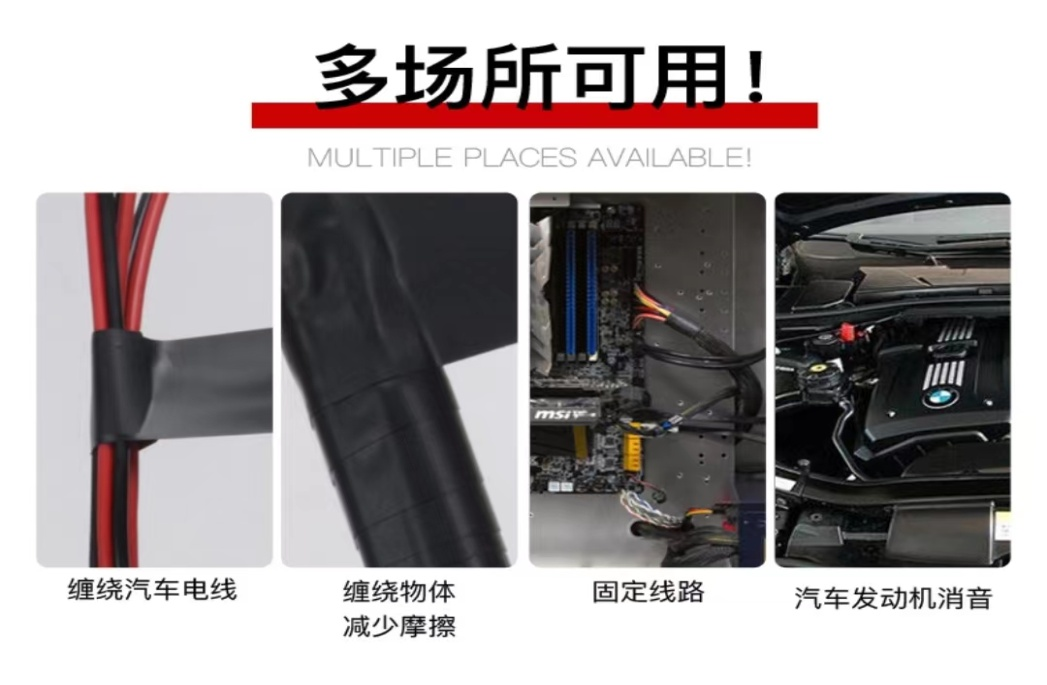 適用于汽車配線、各類電器線束、電線纏繞、絕緣保護等。