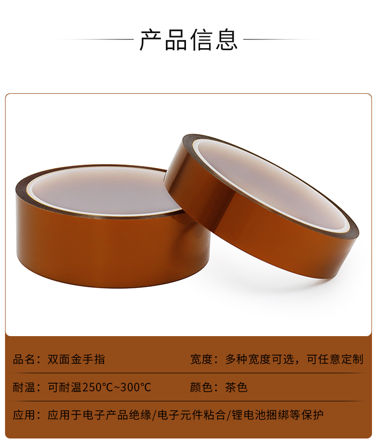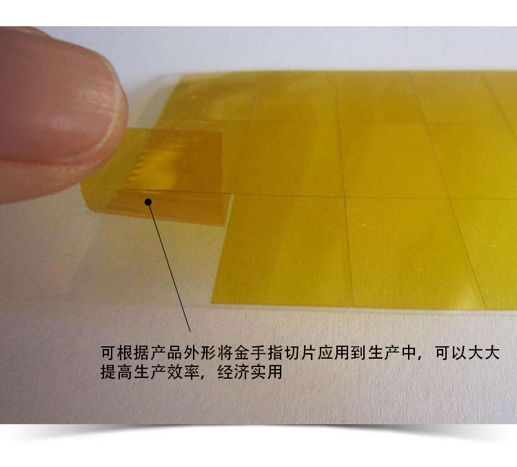 - 金手指膠帶,又稱Kapton膠帶或聚酰亞胺膠帶,該膠帶以聚酰亞胺薄膜為基材,單面涂布高性能有機硅壓敏膠,有單面氟塑離型材料復合或不復合兩類材料。涂布高精度達到±2.5um,無刮痕,拉絲等現(xiàn)象·,剪切性佳,易沖型模切加工,具有優(yōu)異的耐高溫性和耐溶劑性能!