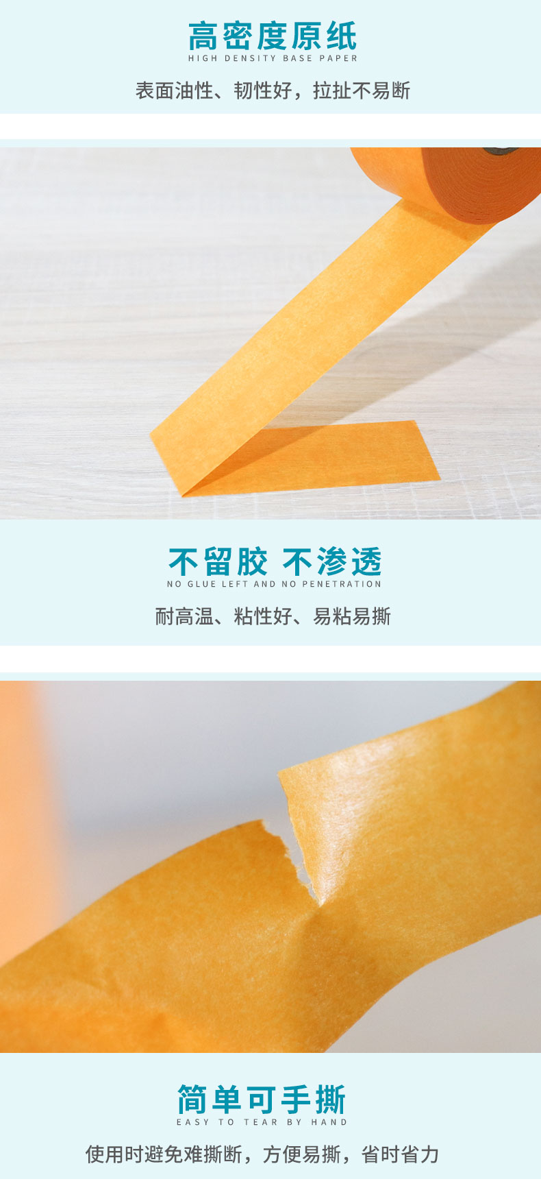- 采用和紙為基材,紙質(zhì)柔和,適合運(yùn)動(dòng)器材、橡、塑膠部件及建筑工地、室內(nèi)、外裝潢、裝修噴、刷油漆時(shí)遮蔽用途。粘性適中,對(duì)大多數(shù)的平滑表面、彎曲或轉(zhuǎn)角處有很好的貼附性及遮蔽性,作業(yè)性良好,使用后快速撕除,不留殘膠。