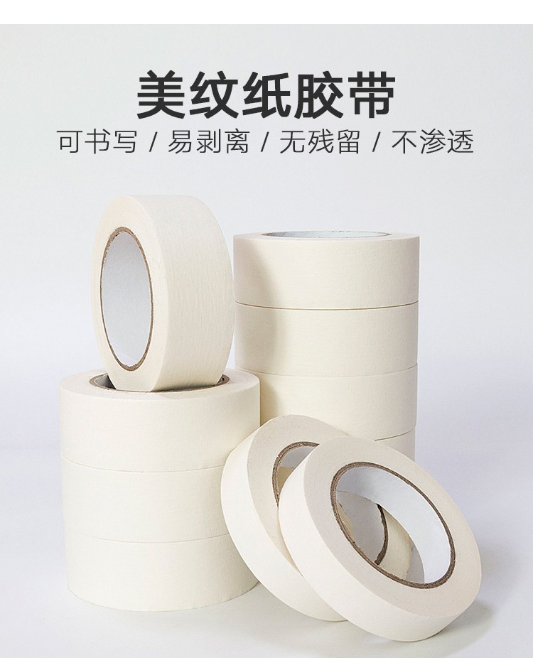 - 粘性好,耐溶劑佳,易剝離且不殘膠。根據(jù)粘性的不同,可以分為:低粘美紋紙膠帶、中粘美紋紙膠帶、高粘美紋紙膠帶。