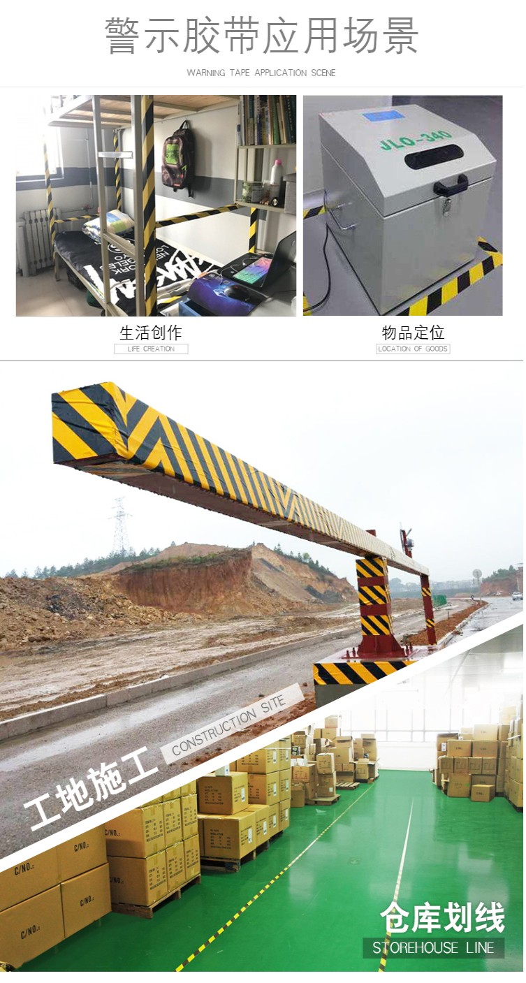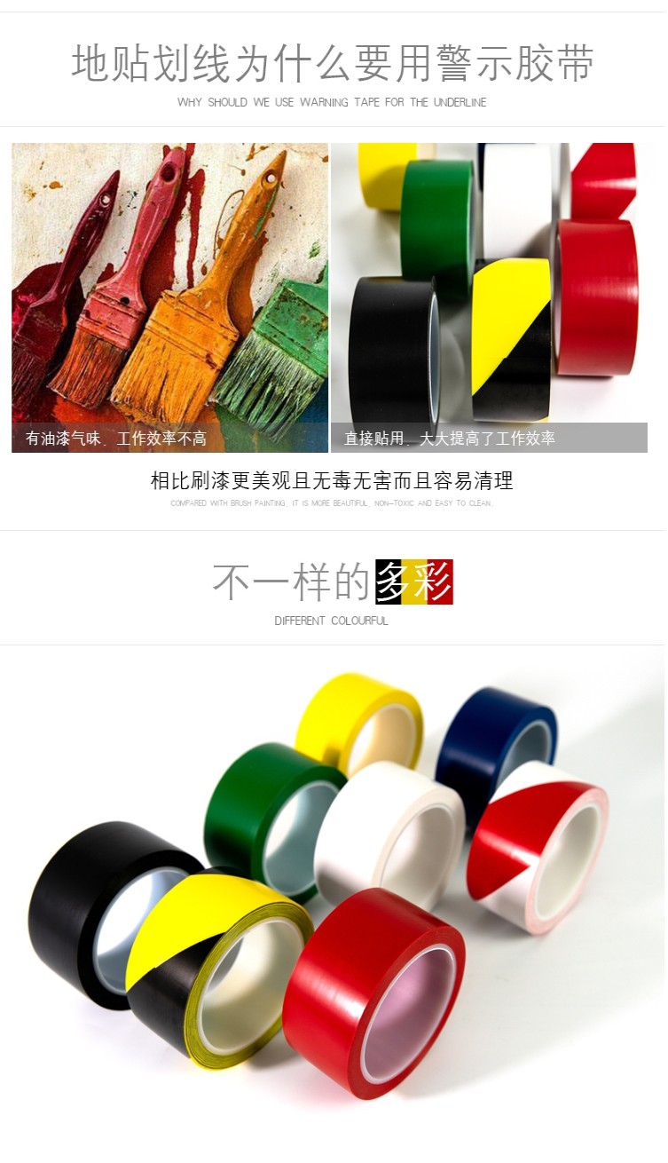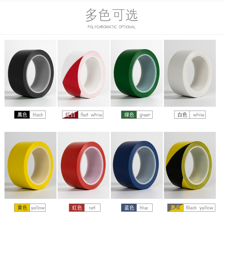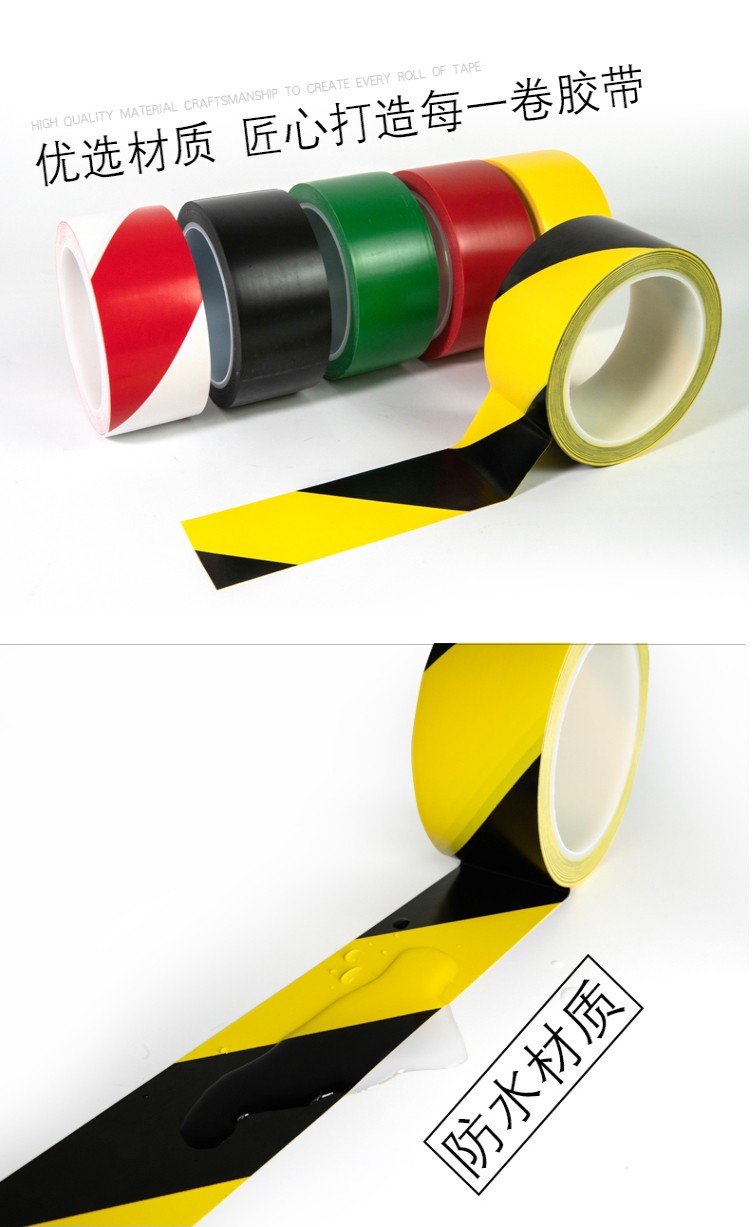- 警示膠帶又叫標識膠帶、貼地膠帶、地板膠帶、地標膠帶等。是以PVC薄膜為基材的膠帶,涂上橡膠型壓敏膠制造而成。