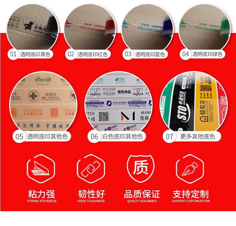 - 以聚丙烯膜( OPP )為基材,涂上壓敏膠制造而成。具有高抗力、粘度佳、質輕、低成本等優(yōu)點。 適用于各種包裝封粘固定,特別是在紙箱的封粘上,并能配合自動 包裝機封箱,已成為包裝材料之主流。