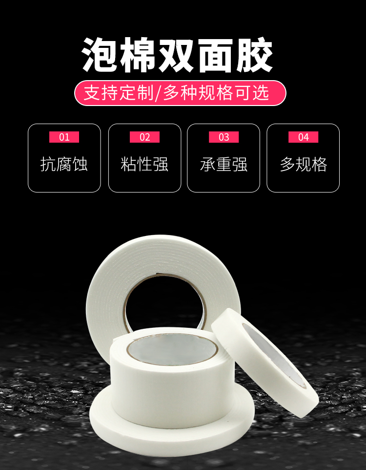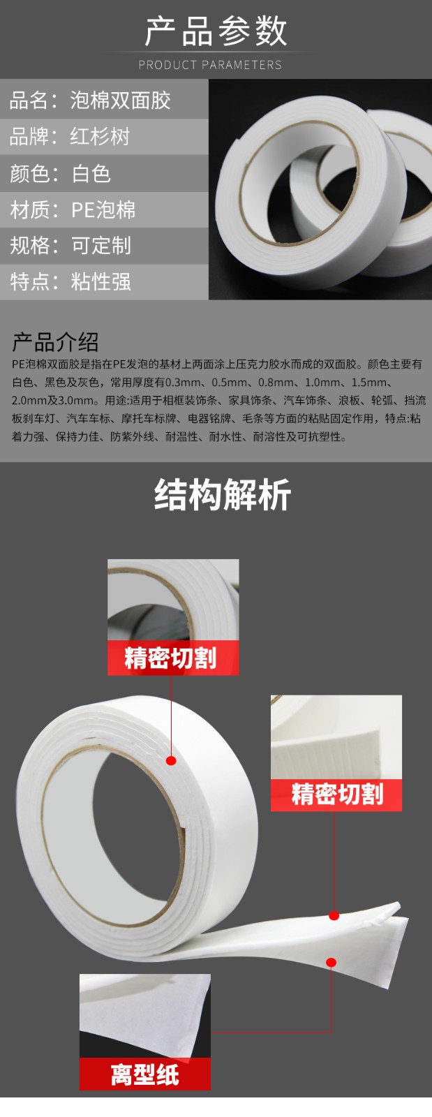 - 泡棉雙面膠包括PE泡棉雙面膠、EVA泡棉雙面膠、PU泡棉雙面膠、壓克力泡棉雙面膠等產(chǎn)品介紹泡棉雙面膠是指在發(fā)泡泡棉基材兩面涂上強粘丙烯酸膠粘劑