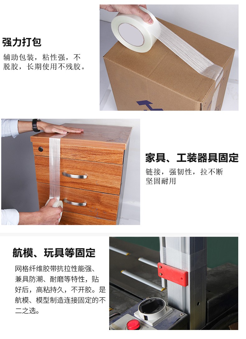 - 粘性強、無污染、不殘膠、拉伸力強、耐磨持久、顏色多樣美觀、多用于大型機器運輸過程中捆扎和固定